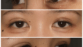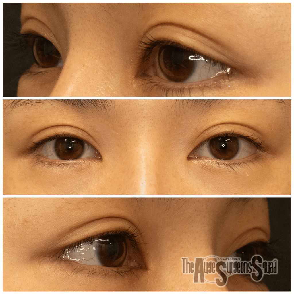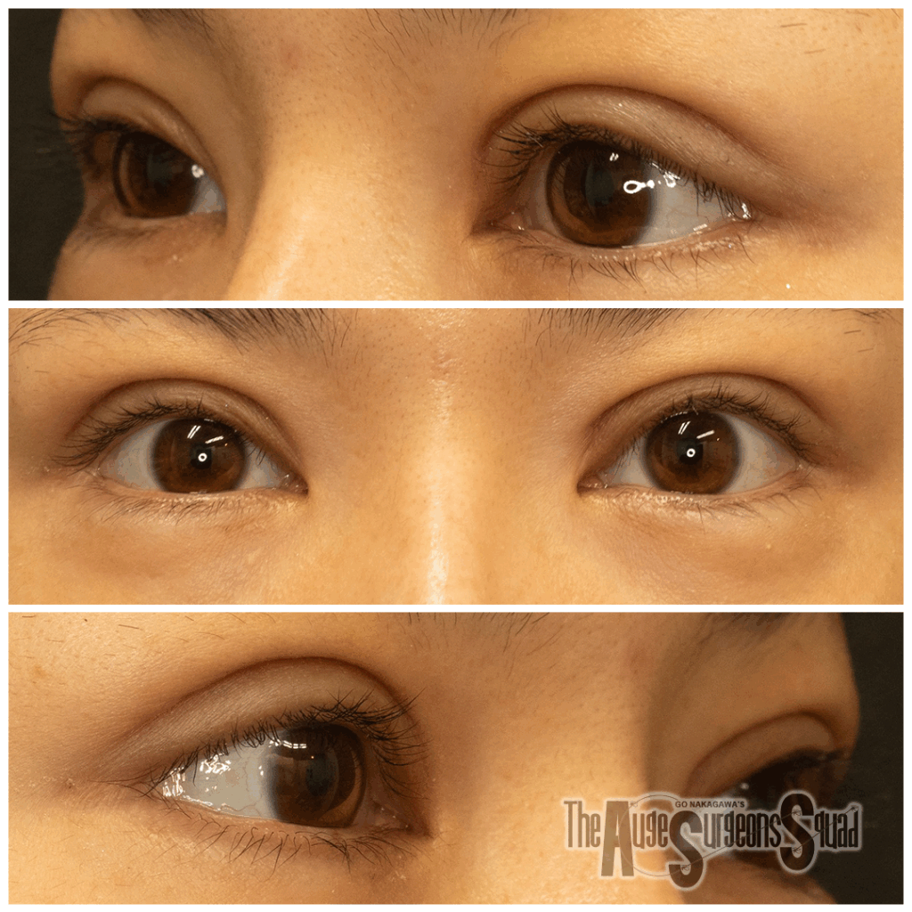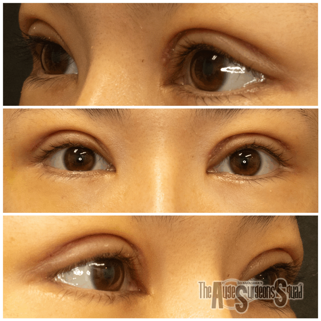 術後1ヶ月です。この時期はまだ瞳孔より外側が開き過ぎですが、現在(すみません、撮影がまだです)は自然なカーブになっています。眉毛を上げる癖や頭痛も無くなったと喜ばれています。