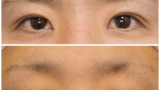 術後1ヶ月です。この時期はまだ瞳孔より外側が開き過ぎですが、現在(すみません、撮影がまだです)は自然なカーブになっています。眉毛を上げる癖や頭痛も無くなったと喜ばれています。